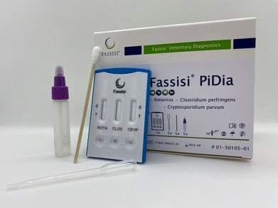 De Fassisi PiDia is een immunochromatografische sneltest die de uitwerpselen van jonge dieren gelijktijdig controleert op drie diarreeverwekkers. Dit maakt het bijzonder gemakkelijk om gemengde